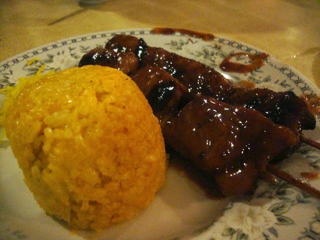 We ordered our HACIENDA INN favorite -- pork barbecue. Each other comes with 2 pieces of their tasty pork skewers, papaya salsa, and java rice.