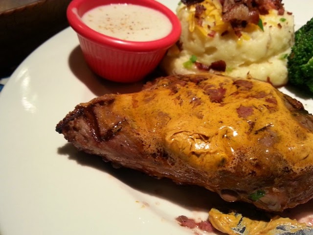 My creamy and buttery CHILI'S mashed potatoes were topped with bacon and cheese! I added some white gravy because I like everything with meat sauce! He he he he!